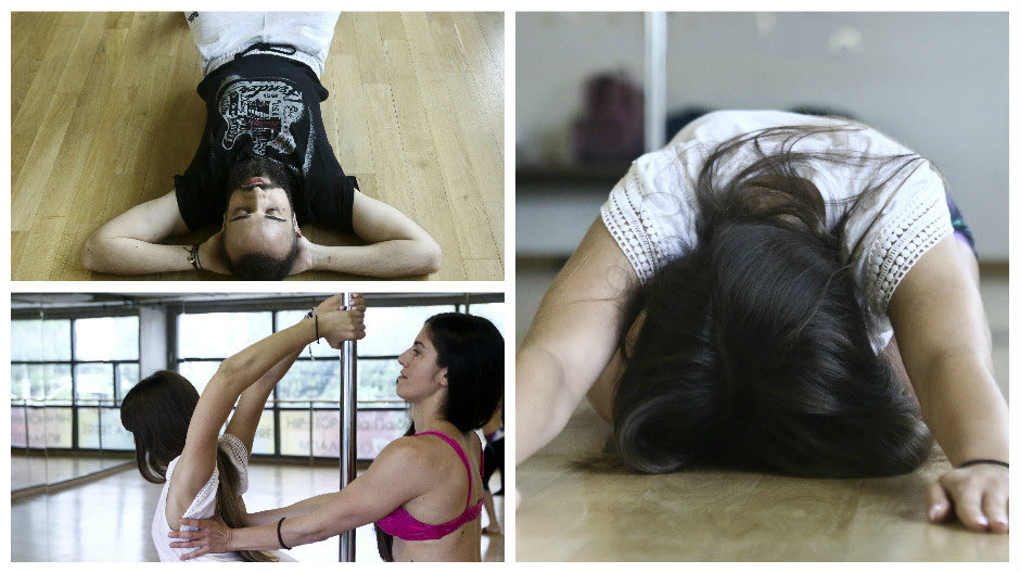 Όλα ξεκινούν με την προθέρμανση που αφορά όλο το σώμα, όλους τους μύες και διαρκεί σε πρώτη φάση, περί τα 15 λεπτά. Όσο προχωρά το επίπεδο, γίνεται πιο εντατικό και πιο δύσκολο. “Ουσιαστικά, κάνουμε ζέσταμα και ενδυνάμωση” διευκρινίζει η δασκάλα μας. Για το πρώτο τέταρτο που λες, δεν υπάρχει η παραμικρή επαφή με το στύλο. Και μετά… αρχίζουν τα ωραία. Πριν αρχίσουν βέβαια, η Μάντυ δεν παραλείπει να πει πως “όταν ξεκινά κάποιος με περιστρεφόμενο στύλο, αρχικά μπορεί να ζαλιστεί. Είναι όμως, ελεγχόμενο” και με τον καιρό… περνάει. Πάρε μια γεύση από την προθέρμανση και προχωράμε.