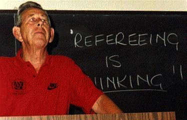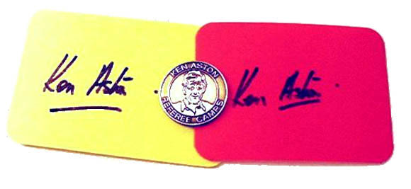 Ο καινοτόμος Κεν Άστον Ο Κένεθ Άστον γεννήθηκε την 1η Σεπτεμβρίου του 1915 στο Έσεξ της Αγγλίας. Ο Κεν Άστον σε μεγάλη ηλικία Ο Κεν Άστον σε μεγάλη ηλικία Αποφοίτησε από το πανεπιστήμιο του Έξετερ και από το 1935 εκτελούσε χρέη διαιτητή σε ερασιτεχνικούς ποδοσφαιρικές αναμετρήσεις και σε αγώνες μικρότερων κατηγοριών του αγγλικού πρωταθλήματος. Κατά την διάρκεια του Β’ Παγκοσμίου Πολέμου προσχώρησε στο Βασιλικό Πυροβολικό κι έπειτα μετατέθηκε στην Ινδία. Μετά τον πόλεμο, το 1946, ήταν ο πρώτος διαιτητής που φόρεσε μαύρη στολή με άσπρη λεπτομέρεια, η οποία στη συνέχεια καθιερώθηκε σε όλα τα μεγάλα ευρωπαϊκά πρωταθλήματα και τις διεθνείς διοργανώσεις. Μια άλλη πρωτοπορία ήταν η αλλαγή του χρώματος στα σημαιάκια των εποπτών. Έως το 1947, τα σημαιάκια είχαν το χρώμα της γηπεδούχου ομάδας.