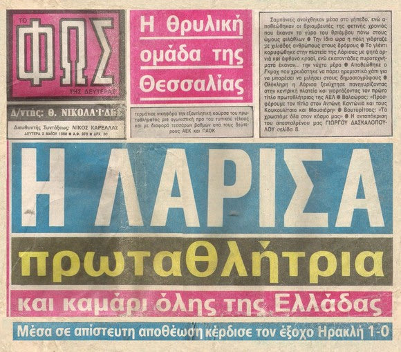 Συμπληρώνονται 27 χρόνια από την Πρωτομαγιά του 1988, όταν η ΑΕΛ πέτυχε κάτι μοναδικό έως τώρα στην ιστορία του ελληνικού ποδοσφαίρου. Η βασίλισσα του κάμπου επικρατούσε με 1-0 του Ηρακλή και κατακτούσε μαθηματικά το πρωτάθλημα Ελλάδας. Ήταν η πρώτη ομάδα από την επαρχία που έφτανε στην κορυφή του ελληνικού ποδοσφαίρου και η μοναδική μέχρι σήμερα.