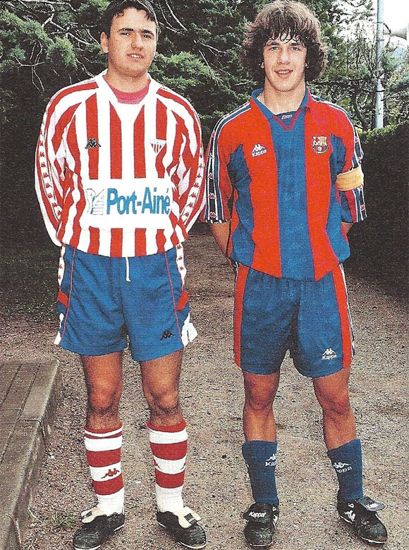 Μαζί με τον αδερφό του, Putxi. Το αντίτιμο της μεταγραφής του στη Μπαρτσελόνα, ήταν ένα φιλικό της ομάδας των Νέων με την τοπική Λα Πόμπλα (1995)