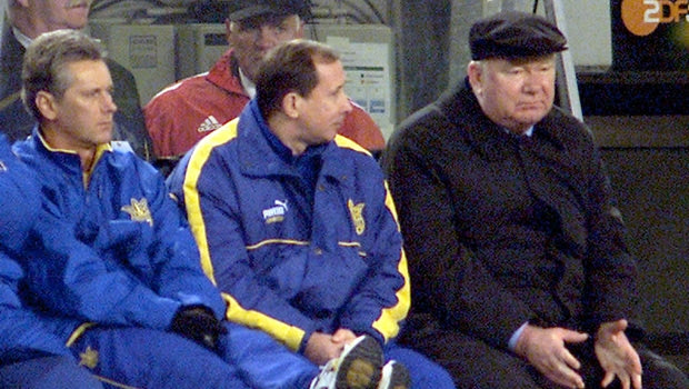 Ο Βαλερί Λομπανόβσκι (δεξιά) στον πάγκο της εθνικής Ουκρανίας
