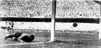 Εδώ για πρώτη φορά είδα και είκοσι λεπτά καθαρά στιγμιότυπα του μοναδικού αυτού αγώνα, στον οποίο η Ουρουγουάη του Ζίγκια βούβανε το νεόχτιστο Μαρακανά και τους 174 χιλιάδες (!) οπαδούς που ήταν παρόντες, προσφέροντας τους κάτι που παραμένει στη βραζιλιάνικη ιστορία αξεπέραστα πικρό: μια εθνική ήττα.