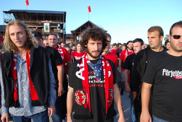 Από την πρώτη αναγνωριστική βόλτα των διεθνών Αλβανών στον αγωνιστικό χώρο του “Stadion Partizana” τα πρώτα συνθήματα έκαναν την εμφάνισή τους. “Το Κόσοβο είναι Σερβία”. Και συνεχίστηκαν κατά τη διάρκεια της προθέρμανσης των δύο ομάδων: “Σκοτώστε τους Αλβανούς”. Πανό με τον Βόισλαβ Σέσεϊλ (αξιωματούχο του σερβικού στρατού στο Κόσοβο), αλλά και του Βέλικο Ραντένοβιτς (αρχηγού της σερβικής αστυνομίας στο Κόσοβο) έκαναν την εμφάνισή τους.