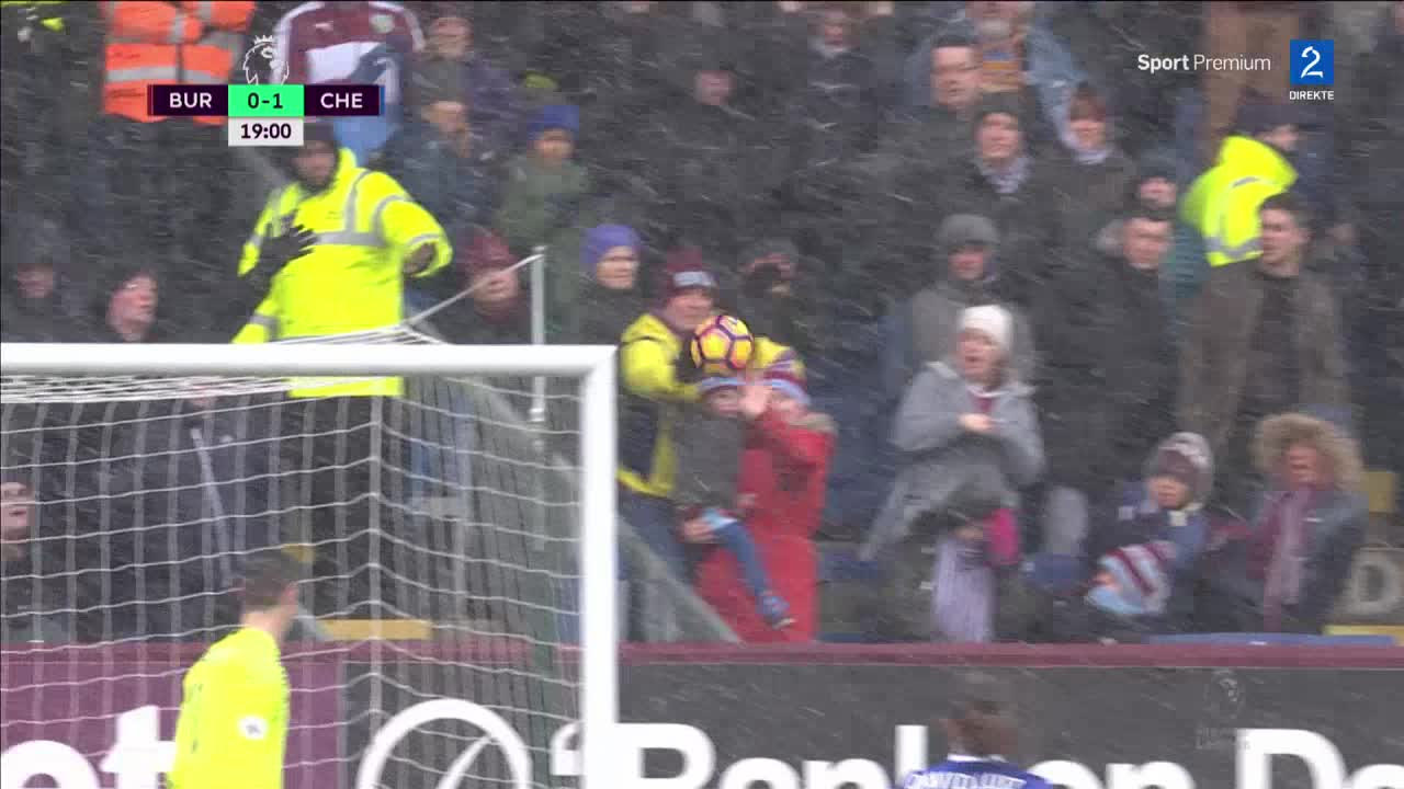 Ο Άσλεϊ Μπαρνς επιχείρησε ένα σουτ στον αγώνα της Μπέρνλι με την Τσέλσι και παραλίγο να βρει στόχο. Όχι την εστία, αλλά ένα μωρό που βρισκόταν πίσω από το τέρμα του Τιμπό Κουρτουά!