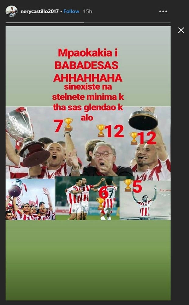 Νέρι Καστίγιο και οπαδοί του ΠΑΟΚ άνοιξαν βεντέτα, με τον Ουρουγουανό να απαντά με ένα νέο ποστάρισμα μέσω instagram.