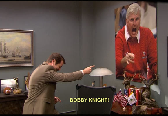 Στο “Parks and Recreation” τη σειρά που σύστησε στον κόσμο τον κορυφαίο Ρον Σουάνσον, οι πρωταγωνιστές από το μικρό Pawnee λατρεύουν την ομάδα των Colts (φούτμπολ), ενώ ο ίδιος ο Σουάνσον είναι φανατικός με την ομάδα μπάσκετ του κολεγίου Ιντιάνα. Έχει μάλιστα ένα πορτραίτο του θρυλικού προπονητή των “Χούζιερς”, Μπόμπι Νάιτ.