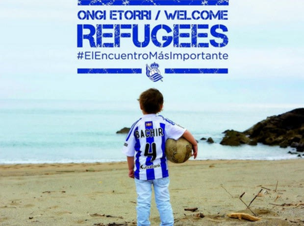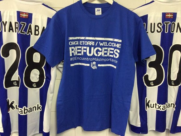 Το Σάββατο κατά την αναμέτρηση της Σοθιεδάδ με τη Ρεάλ Μαδρίτης, για το ισπανικό πρωτάθλημα θα μοιραστούν t-shirts στα οποία θα αναγράφεται το μήνυμα “Καλωσήρθατε πρόσφυγες”, ενώ έχει ξεκινήσει και καμπάνια με το hashtag #Το πιο σημαντικό ματς.