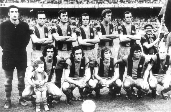 Η ενεκάδα της Μπαρτσελόνα πριν τον αγώνα με την Γρανάδα, εκεί όπου ο Κρόιφ πραγματοποίησε το ντεμπούτο του με τους “μπλαουγκράνα” (28/10/1973)