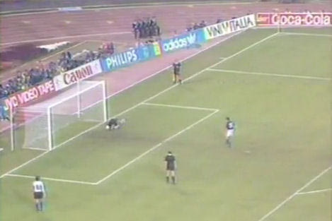 Ακολούθησε ο Μαραντόνα ο οποίος έστειλα την μπάλα στα δίχτυα πανηγυρίζοντας έξαλλα το 4-3, μεταφέροντας την πίεση στον Σερένα. Ο Ιταλός στράικερ πήρε φόρα και νικήθηκε και αυτός από τον Γκοϊγκοετσέα, βυθίζοντας ένα έθνος στο “πένθος”, με κάποιες …εξαιρέσεις στη Νάπολη!