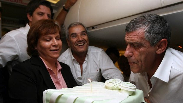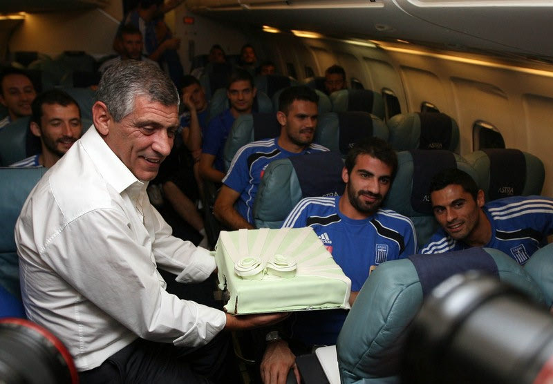 Οι φωτογραφίες είναι από το αεροπλάνο της επιστροφής από τη Γεωργία όπου ο Σάντος γιόρτασε με την Εθνική τα γενέθλια του και την πρόκριση στο Euro.