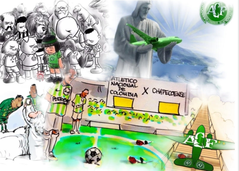 Η ανείπωτη τραγωδία με τη μοιραία πτήσης LMI 2933 που οδήγησε στο θάνατο 71 ανθρώπους ανάμεσα τους τα μέλη της ποδοσφαιρικής ομάδας της Σαπεκοένσε αποτέλεσε πηγή έμπνευση για πολλούς σκιτσογράφους σε όλο τον κόσμο.