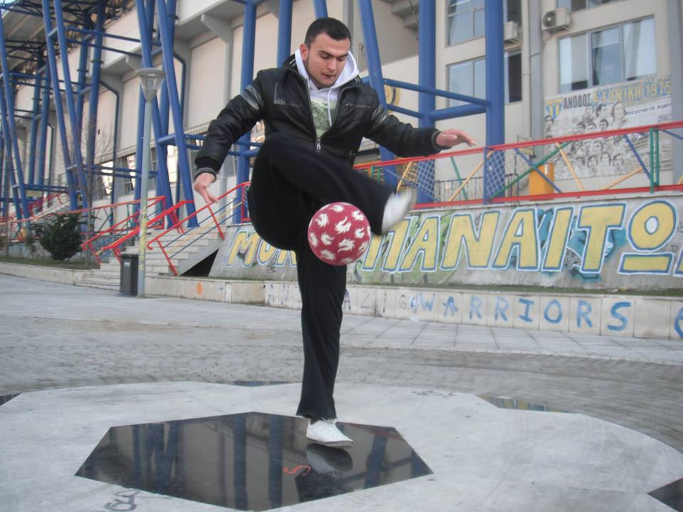 2) Όλο αυτό ξεκίνησε όταν ένα φιλαράκι που κάναμε κολλητή παρέα ανακάλυψε κάτι βιντεάκια freestyle football στο youtube και μου τα ‘δειξε για να εντυπωσιαστώ και εγώ. Ξεκίνησε αυτός και προσπαθούσε τα πιο βασικά απ αυτά τα κόλπα που βλέπαμε και τα κατάφερνε με μεγάλη επιτυχία. Έτσι και εγώ δεν μπορούσα να μείνω στην απ έξω, και προσπαθούσαμε μαζί κολπάκια απλά και μικρά. Έτσι, σιγά σιγά χωρίς να το καταλάβουμε είχαμε ξεκινήσει να μπαίνουμε στον κόσμο του freestyle football για τα καλά.
