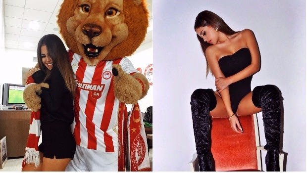 H μασκότ του ποδοσφαιρικού Ολυμπιακού δέχεται συχνά-πυκνά επιθέσεις αγάπης από το 23χρονο μοντέλο, Ελεάνα Παλαιολόγου (photos)