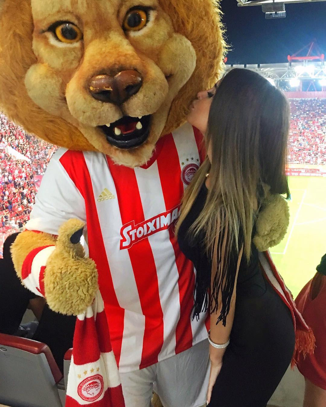 H μασκότ του ποδοσφαιρικού Ολυμπιακού δέχεται συχνά-πυκνά επιθέσεις αγάπης από το 23χρονο μοντέλο, Ελεάνα Παλαιολόγου (photos)