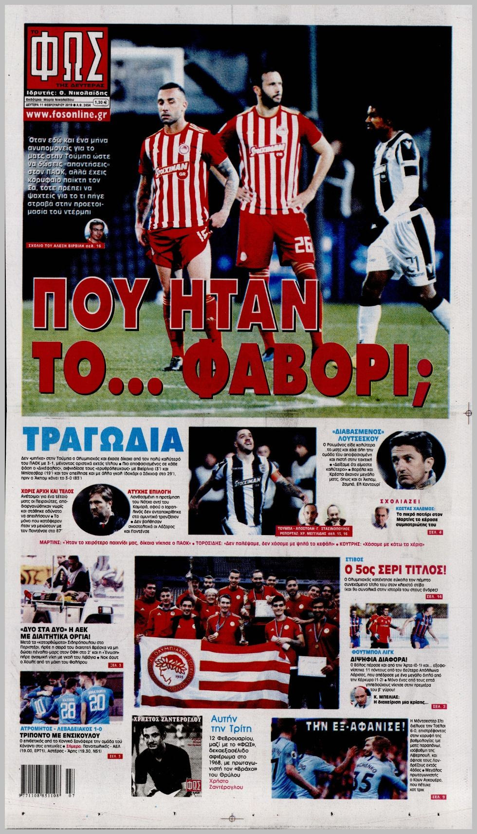 ΤΑ ΑΣΤΟΧΑ ΠΡΩΤΟΣΕΛΙΔΑ ΚΑΙ Η ΑΝΤΙΔΡΑΣΗ ΤΗΣ ΠΑΕ ΟΛΥΜΠΙΑΚΟΣ
