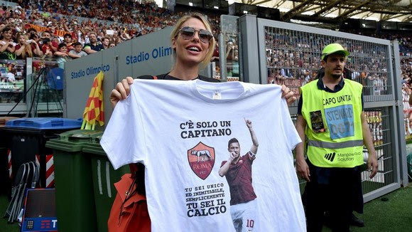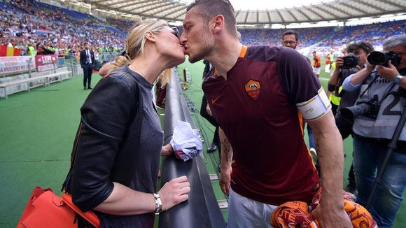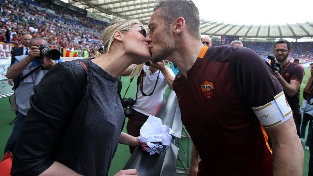 Η σύζυγός του, Ίλαρι Μπλάζι, ήταν στο γήπεδο για να τον χειροκροτήσει, ενώ στο φινάλε του αγώνα αντάλλαξε μαζί του ένα παθιασμένο φιλί προς τέρψη των φωτογραφων. Η πανέμορφη Ιταλίδα μοντέλο φωτογραφήθηκε μάλιστα μπροστά στις κάμερες κρατώντας μία φανέλα με την εικόνα του Τότι και το σήμα της Ρόμα, η οποιά έγραφε: