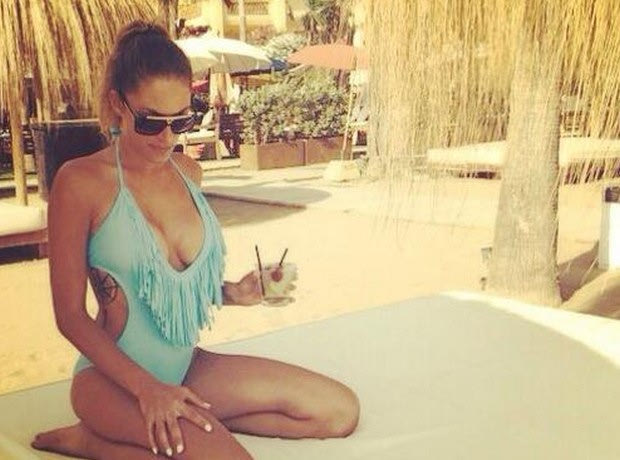 Αυτή τη φορά από κάποια παραλία όπου φορώντας το άκρως αποκαλυπτικό μπικίνι της απολαμβάνει ένα δροσερό ποτό.