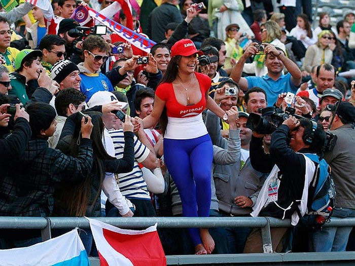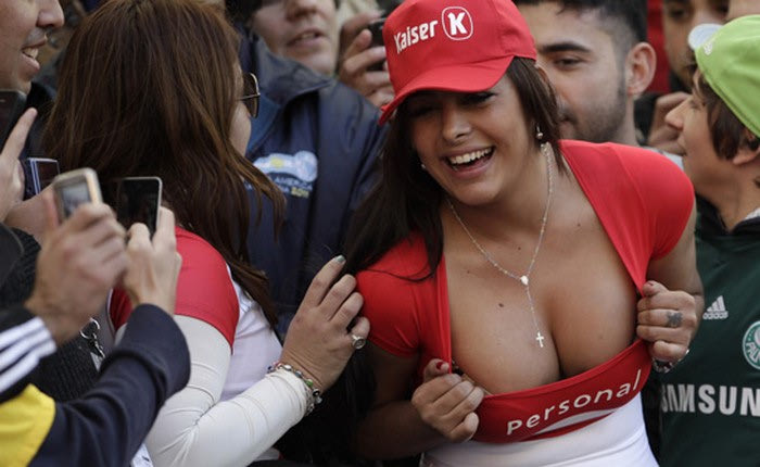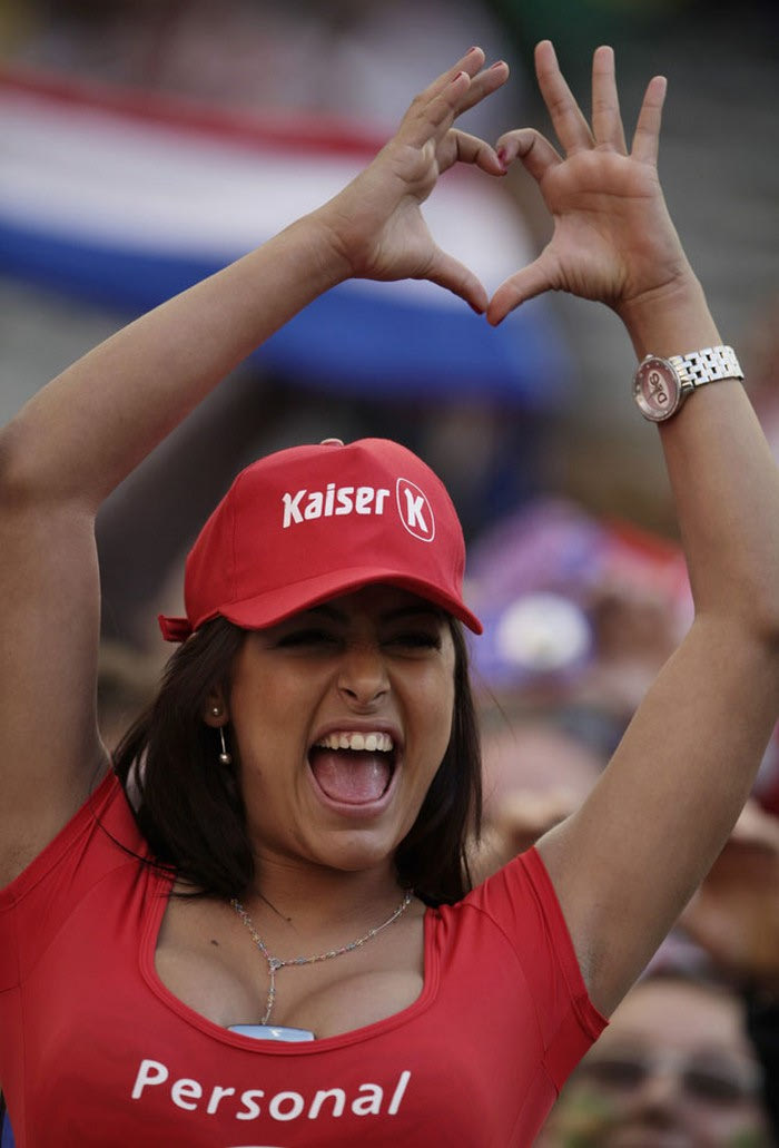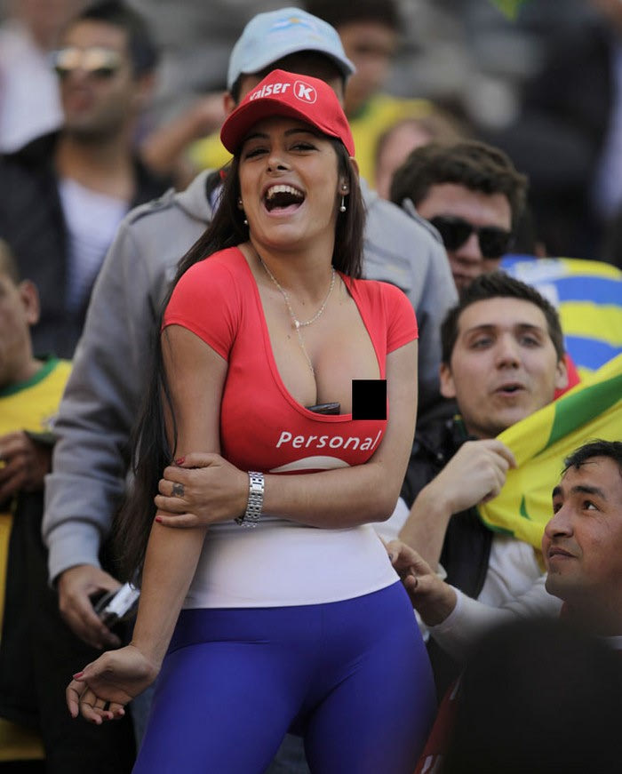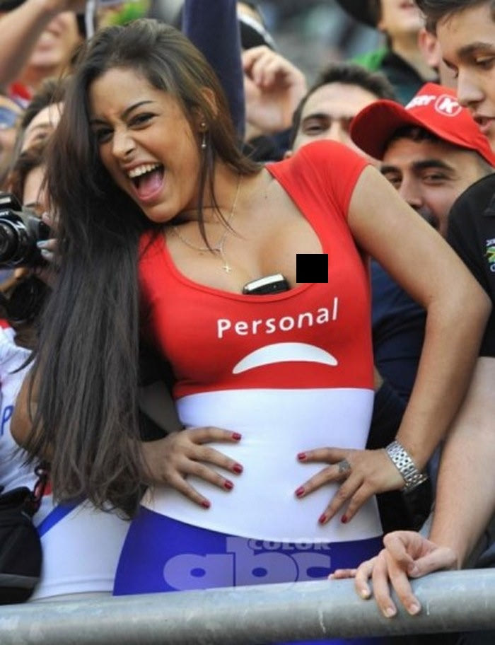 Το διάσημο μοντέλο από την Παραγουάη και φανατική οπαδός της “Albirroja” δήλωσε παρούσα στον προημιτελικό Παραγουαή-Βραζιλία και με την τόπλες εμφάνισή της κατάφερε να… αποσυντονίσει όσους θεατές βρίσκονταν σε κοντινή απόσταση από εκείνη, στις εξέδρες του “Ciudad de La Plata”.