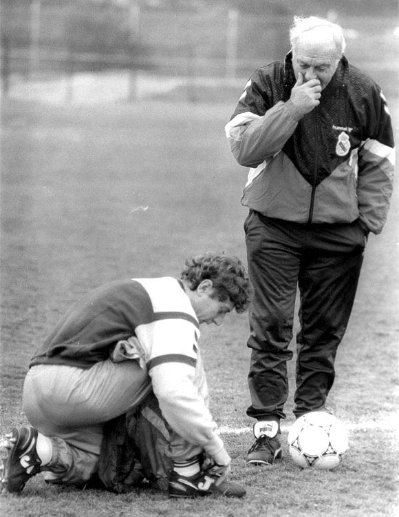 Με τον Αλφρέδο Ντι Στέφανο σε προπόνηση της Ρεάλ Μαδρίτης τη σεζόν 1990/91
