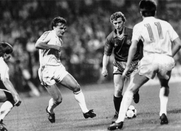 Με τη φανέλα της Εθνικής U21 και αντίπαλο τη Γιουγκοσλαβία U21 (1983)
