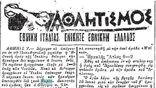 Η συνάντησις αύτη είναι η Δευτέρα της εθνικής μας ήτις λαμβάνει χώραν εν Ελλάδι… λαμβανομένου όμως υπ’ όψιν ότι η σημερνή αντίπαλος ομάς δεν είνε παρά η β’ της Ιταλίας και ότι πλείστοι των παικτών της παίζουν δια πρώτην φοράν εις διεθνή αγώνα – και δη εις ξένον περιβάλλον, πράγμα το οποίον θα μειώσει μοιραίως την μαχητικότητά των – δικαιούμεθα να αποβλέπωμεν μετ’ εμπιστοσύνης εις το αποτέλεσμα του σημερνού αγώνος. Αλλά και αν ακόμη η ήττα κρούση και πάλιν την θύραν μας, η εμφάνισις της ομάδος μας θα είνε τοιαύτη, ούτως ώστε να μη μας ενθυμίση κατά τίποτε την πρώτην ελληνικήν εθνικήν ομάδα”.