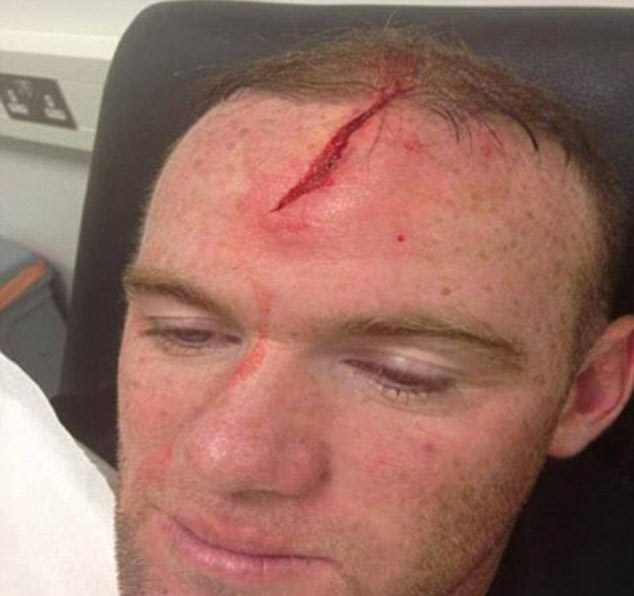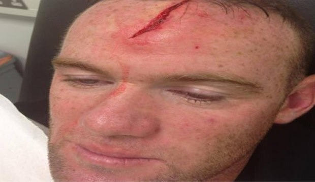 Ραντεβού με την ατυχία είχε το περασμένο Σάββατο ο Γουέιν Ρούνεϊ καθώς σε μία σύγκρουση στον αέρα που είχε στην προπόνηση με τον συμπαίκτη του Φιλ Τζόουνς σχίστηκε βαθιά το κεφάλι του και χρειάστηκε να του τοποθετηθούν 10 ράμματα .