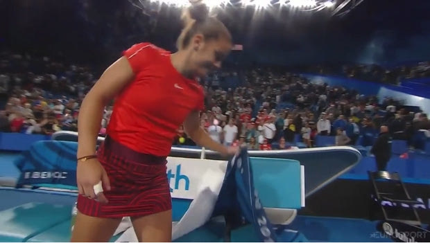Η Μαρία Σάκκαρη στο πλαίσιο του Hopman Cup στην Αυστραλία πήρε την πετσέτα του “βασιλιά” των courts, Ρότζερ Φέντερερ, μετά τους αγώνες της Ελλάδας με την Ελβερία.
