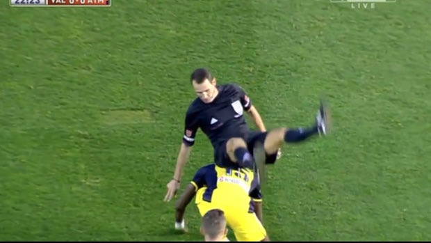 Όσοι είδαν το Βαλένθια - Ατλέτικο πρέπει να γελάνε... ακόμα. Δείτε σε βίντεο την απίστευτη τούμπα που έφαγε ο διαιτητής της αναμέτρησης.