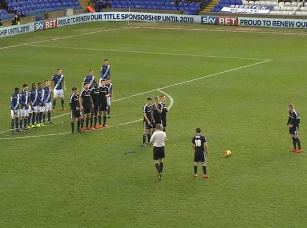 Οι παίκτες της Μπρέντφορντ είπαν να πρωτοτυπήσουν απέναντι στην Μπέρμιγχαμ και σε εκτέλεση φάουλ που κέρδισαν έβαλαν άλλες δυο... στρώσεις τείχους (VIDEO).