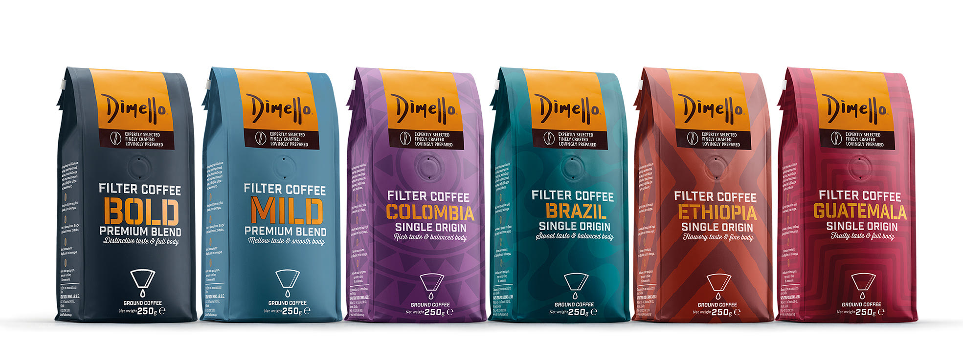 Έχοντας καταφέρει να καθιερώσει το όνομά της ανάμεσα στους κύκλους των baristas, ο Dimello πρόσφατα λάνσαρε νέες σειρές προϊόντων αλεσμένου καφέ φίλτρου και espresso που είναι διαθέσιμες ήδη στα supermarkets. Είτε αγαπάς τον espresso είτε τον καφέ φίλτρου, ο Dimello έχει μια γεύση για σένα.