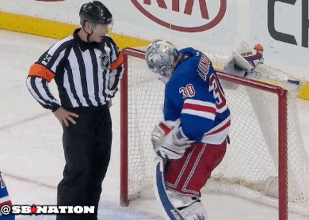 Ο τερματοφύλακας των Rangers έψαχνε το πακ. Είχε μπει μέσα στην στολή του. Έβγαλε τα γάντια του, έψαξε το σώμα του και εμφάνισε το πακ μπροστά στον διαιτητή. Ύστερα ο αγώνας ολοκληρώθηκε.