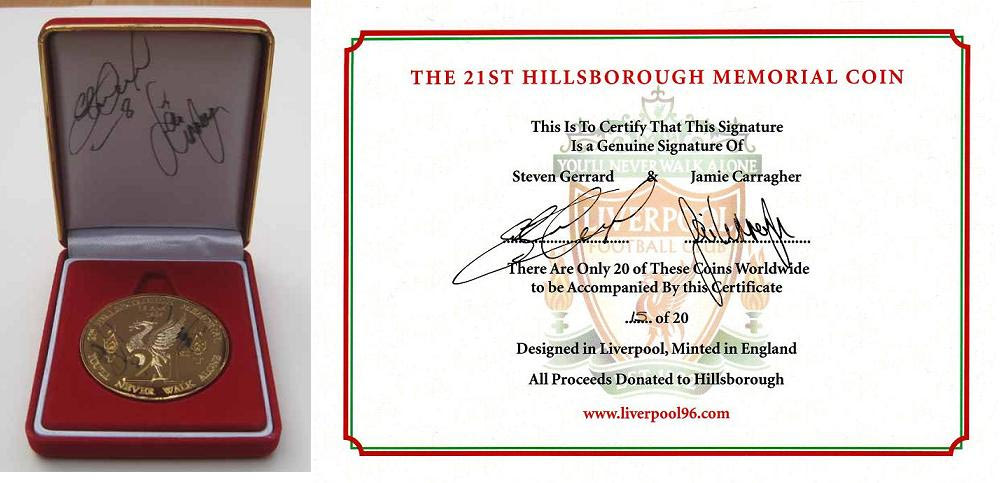 Στην 21η επέτειο του Χίλσμπορο η Λίβερπουλ έβγαλε 20 νομίσματα στη μνήμη των θυμάτων. Η επιγραφή, μάλιστα, είχε και τις υπογραφές των δύο παλαιότερων παικτών της ομάδας, Στίβεν Τζέραρντ και Τζίμι Κάραγκερ.