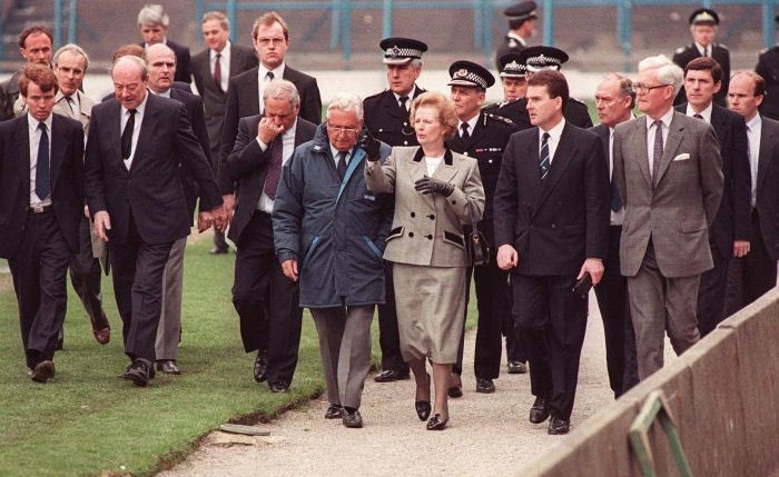Η Μάργκαρετ Θάτσερ ήταν ακόμα πρωθυπουργός όταν συνέβη το τραγικό περιστατικό. Η Σιδερά Κυρία πήγε την επόμενη μέρα στο Χίλσμπορο για να ενημερωθεί εκ του σύνεγγυς. Επί της ουσίας στο μικρό διάστημα που έμεινε στην εξουσία το μόνο που έκανε επί του θέματος ήταν να συγκαλύψει την αγαπημένη της αστυνομία για τα πάρα πολλά λάθη που είχε κάνει και τα ψέματα που είχε πει στη συγκεκριμένη υπόθεση, όπως αποδείχτηκε πρόσφατα.