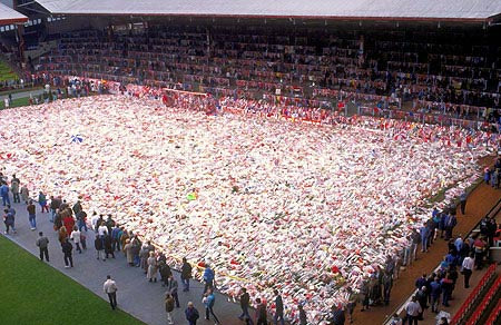Εκείνη την Κυριακή η Λίβερπουλ αποφάσισε να ανοίξει τις πόρτες του “Ανφιλντ” και να αφήσει τους οπαδούς να τιμήσουν με τον δικό τους τρόπο τους εκλιπόντες. Περισσότεροι από 200.000 πήγαν στο γήπεδο και άφηναν λουλούδια, στεφάνια και κασκόλ με αποτέλεσμα το γήπεδο να γεμίσει.