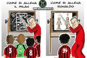 Το “μπλέξιμο” μάλιστα στο οποίο πηρε μέρος ο Βραζιλιάνος άσος με τρεις τραβεστί ιερόδουλες στο Ρίο Ντε Ζανέιρο, οι οποίες έφτασαν μάλιστα στο σημείο να τον κατηγορήσουν μέχρι και για… χρήση ναρκωτικών, “ενέπνευσε” αρκετούς μπλόγκερ στο διαδίκτυο, οι οποίοι δημοσίευσαν αρκετα “πικάντικα” σκίτσα με πρωταγωνιστή το “φαινόμενο”. Ενδεικτικά να αναφέρουμε ότι σε ένα από αυτά, στο αριστερό μέρος της εικόνας βλέπουμε τρεις συμπαίκτες του Ρονάλντο στη Μίλαν, οι οποίοι βλέπουν τον προπονητή τους να τους δείχνει κάποια συστήματα προπόνησης για τους αγώνες, ενώ στο δεξί κομμάτι παρουσιάζεται ο Ρονάλντο να φοράει φανέλα των “ροσονέρι” (έχει το Νο 99 στην πλάτη) και να παρακολουθεί από τον ίδιο προπονητή άλλο… σύστημα.