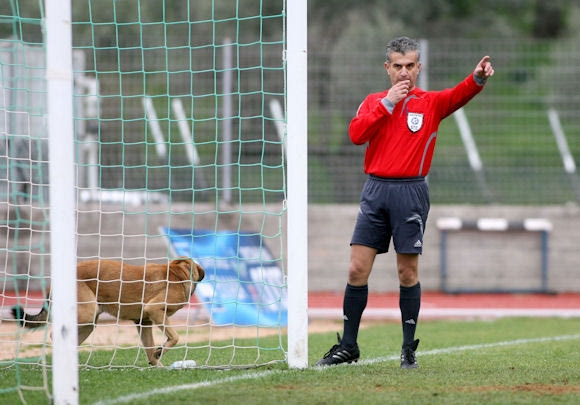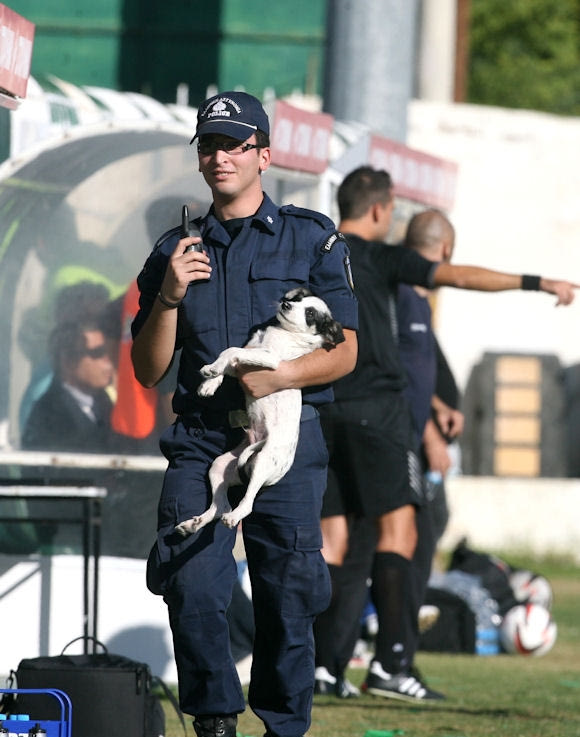 Ολοκληρώνουμε την βόλτα μας με μία διακοπή λίγων δευτερολέπτων σε αγώνα του ΟΦΗ με τον Παναθηναϊκό. Το συμπαθέστατο τετράποδο βρέθηκε στην περιοχή των Κρητικών, μπροστά από το πέταλο των οργανωμένων. Προφανώς… τοποθετήθηκε εκεί ελέω καζούρας.