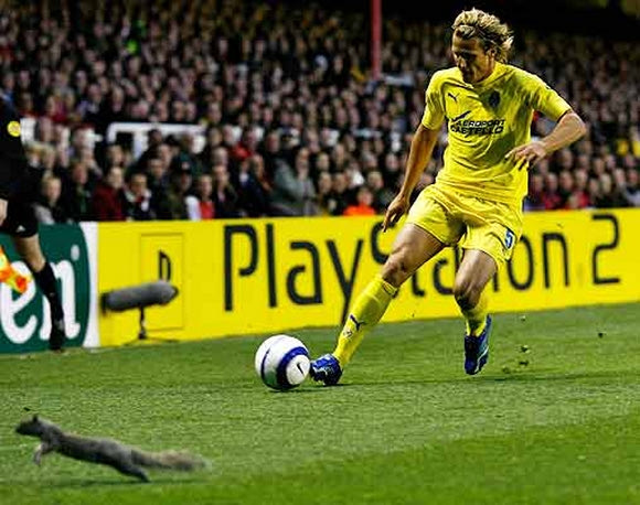 Ποιος Φορλάν μωρέ τώρα; Αυτό σκέφτηκε ο σκίουρος και προσπάθησε να κόψει τον παίκτη της Βιγιαρεάλ σε αγώνα Champions League το 2006 κόντρα στην Άρσεναλ. Μάταια όμως. Ο Ουρουγουανός δεν “έχασε” στο δικό του… φυσικό περιβάλλον.