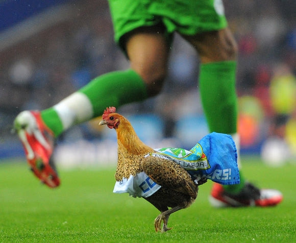 Από τον κόκκορα του Φυλακούρη στην κότα του “Ίγουντ Παρκ”. Προφανώς και δεν μπήκε μόνη της στο γήπεδο αφού είχε σημαία της Μπλάκμπερν! Δείτε και άλλες φώτο από την “εισβολή” στον αγώνα με την Γουίγκαν