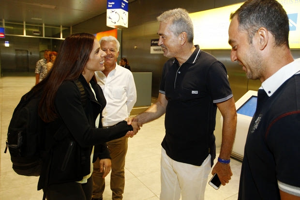 Με καθυστέρηση μιας ώρας και αρκετή ταλαιπωρία η Στεφανίδη έφτασε στο “Ελευθέριος Βενιζέλος” συνοδευόμενη φυσικά από τον σύζυγο και προπονητή της, Μιτς Κριερ.