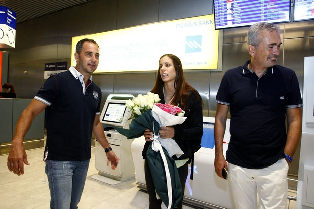 Παρά την κούραση της η 27χρονη παγκόσμια πρωταθλήτρια ήταν ευδιάθετη και απαντούσε σε όλους όσους βρέθηκαν τυχαία στο χώρο των αφίξεων του αεροδρομίου και της έδιναν συγχαρητήρια για τις μεγάλες επιτυχίες της. Ανάμεσα σε όσους την περίμεναν ήταν το μέλος του Δ.Σ. της Stoiximan.gr, μεγάλου χορηγού της Ελληνίδας πρωταθλήτριας, Γιάννης Σπανουδάκης και ο διευθυντής marketing κι επικοινωνίας, Πάνος Κωνσταντόπουλος.