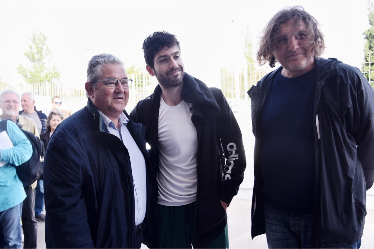 Τον κ. Κουτσούμπα συνόδευε μεταξύ άλλων ο προπονητής στίβου και υποψήφιος βουλευτή Βόρειου Τομέα Αθηνών, Γιώργος Πομάσκι.