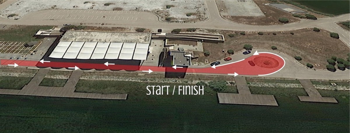 O αγωνιστικός στίβος απεικονίζεται στα παρακάτω διαγράμματα και έχει επιλεγεί σύμφωνα με τις προδιαγραφές της Παγκόσμιας Ομοσπονδίας (Ι.A.U.).