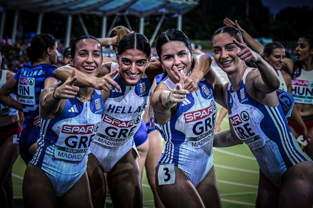 Η Σοφία Καμπερίδου, η Ραφαέλα Σπανουδάκη και η Δήμητρα Τσουκαλά έφεραν με εξαιρετικές αλλαγές τη σκυτάλη στην Πολυνίκη Εμμανουηλίδου, η οποία… πέταξε και από την τρίτη έφερε την Ελλάδα στην πρώτη με αυτόν τον ασύλληπτο χρόνο.