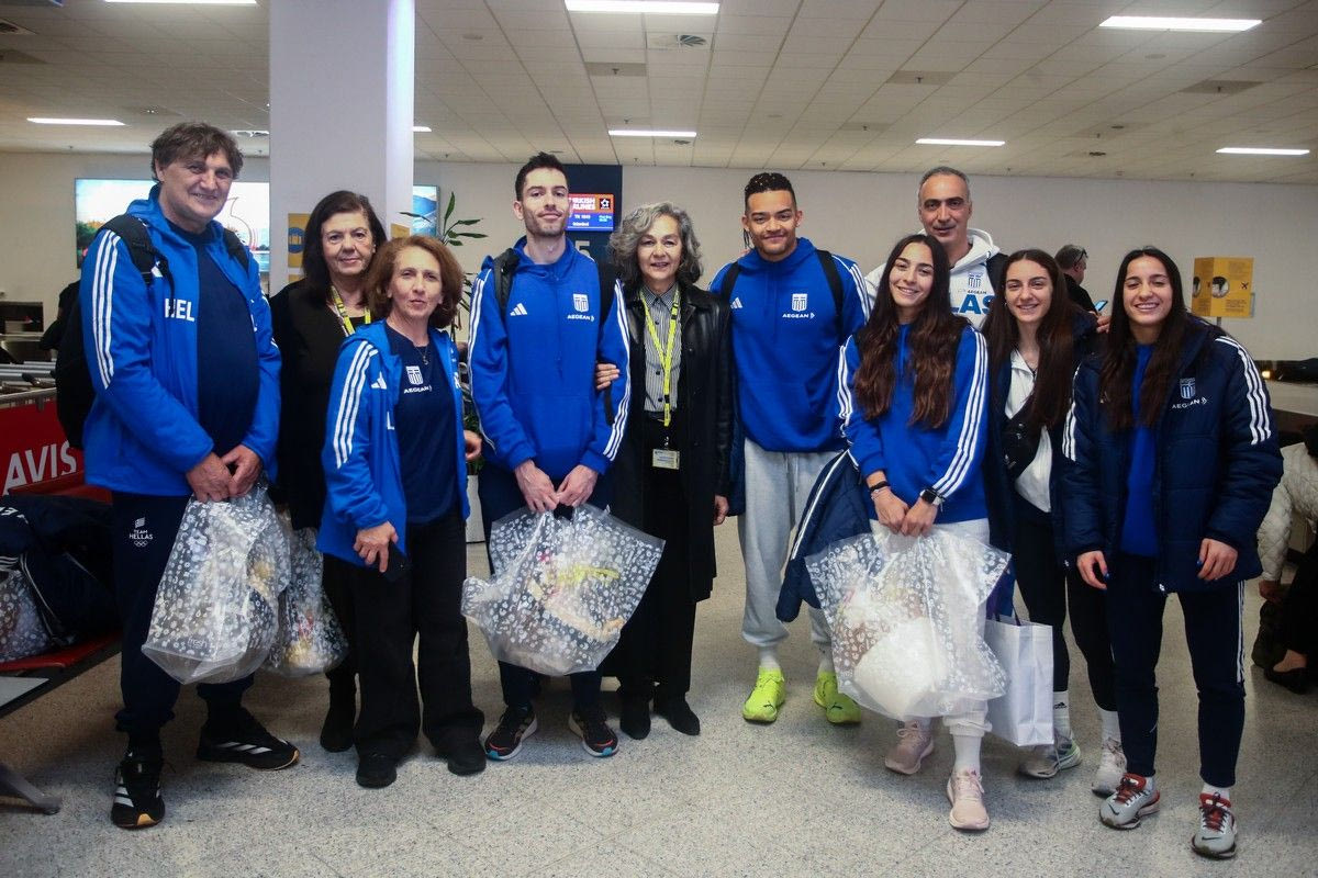 Την αποστολή υποδέχθηκε η πρόεδρος του ΣΕΓΑΣ, Σοφία Σακοράφα, ενώ βγήκαν και οι αναμνηστικές φωτογραφίες με τον Εμμανουήλ Καραλή να κρατάει το ασημένιο μετάλλιο που κατέκτησε στην Ναντζίνγκ.