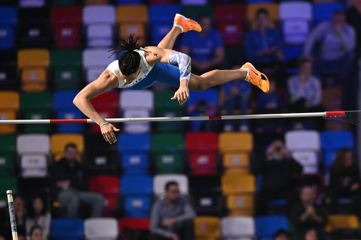 Ο Εμμανουήλ Καραλής πάνω από τον πήχη στον τελικό του άλματος επί κοντώ του Ευρωπαϊκού κλειστού