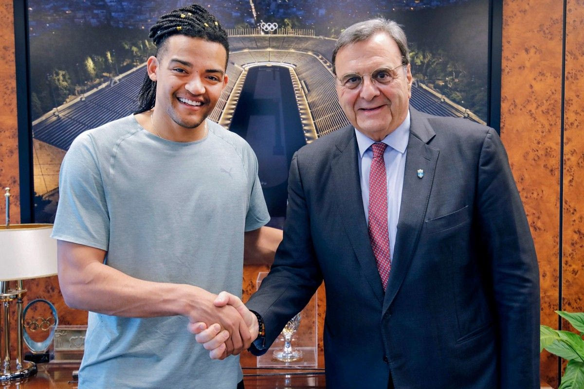 Ο Εμμανουήλ Καραλής συναντήθηκε με τον πρόεδρο της ΕΟΕ, Ισίδωρο Κούβελο, για την επιβράβευσή του μετά την κατάκτηση του ασημένιου στο Παγκόσμιο κλειστού στίβου στο Τόρουν της Πολωνίας.