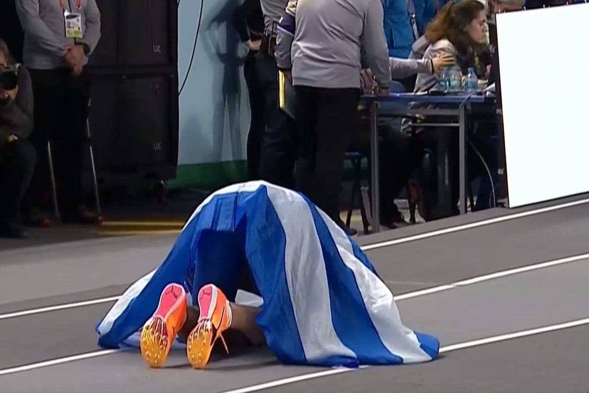 Μετά το τέλος του αμφίρροπου τελικού στην Κωνσταντινούπολη, ο 23χρονος πρωταθλητής έπεσε στο ταρτάν και τυλιγμένος με την ελληνική σημαία πανηγύρισε περιχαρής και συγκινημένος για τη μεγάλη αυτή προσωπική επιτυχία του.