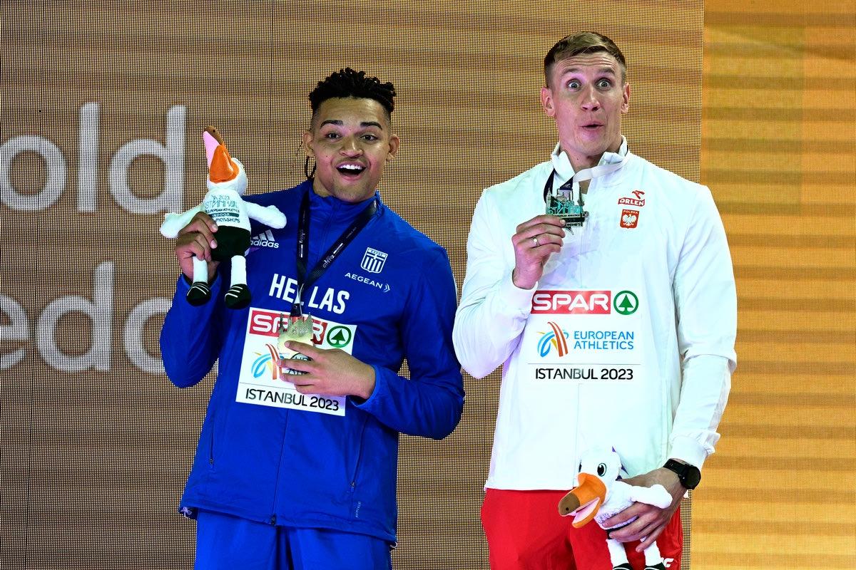 Λίγη ώρα μετά την κατάκτηση του ασημένιου μεταλλίου στον τελικό του επί κοντώ στο ευρωπαϊκό πρωτάθλημα κλειστού στίβου ήρθε η ώρα της απονομής για τον Εμμανουήλ Καραλή.