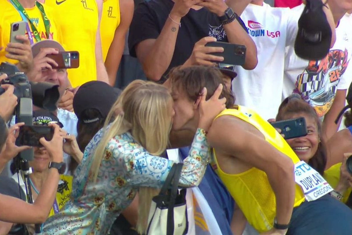 Ο Αρμάντ Ντουπλάντις όπως ήταν αναμενόμενο πανηγύρισε έξαλλα το νέο Παγκόσμιο ρεκόρ που έκανε, ενώ αμέσως έσπευσε να φιλήσει την κοπέλα του.