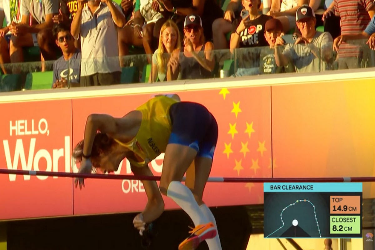 Το ακόμα πιο εντυπωσιακό στο άλμα του Ντουπλάντις ήταν ότι πέρασε πεντακάθαρα πάνω από τον πήχη. Όπως θα δείτε και στο γράφημα που έδωσαν οι διοργανωτές στην επανάληψη της προσπάθειάς του ο Σουηδός πέρασε 14,9 εκατοστά